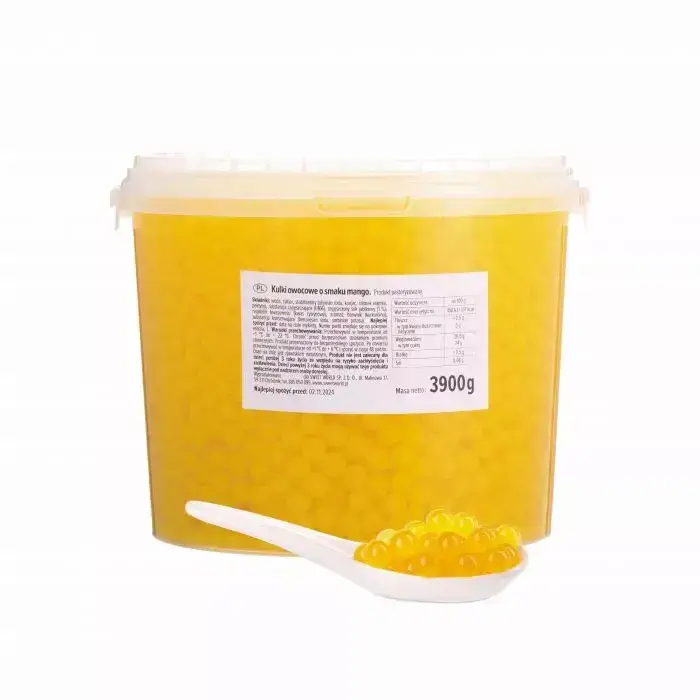 - Waga: opakowanie premium 4 kg brutto (netto syrop + kulki: 3,9 kg, netto kulki: 2,6 kg) – większe opakowanie zapewniające wystarczającą ilość do przygotowania wielu porcji bubble tea.