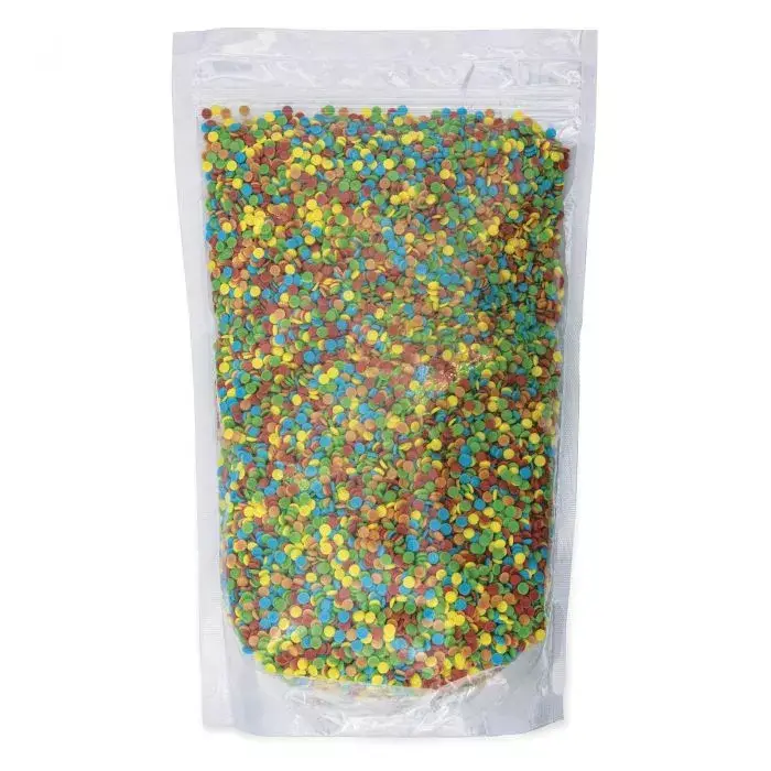 Waga: Posypka cukrowa Kolorowe Krążki 1kg – wygodna gramatura do gastronomii i punktów sezonowych, gdzie posypki schodzą szybko.